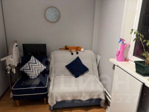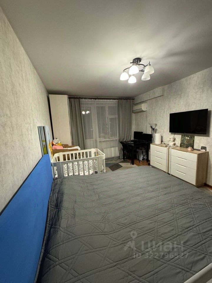 - В просторной комнате расположена кровать размера кинг-сайз, детская кроватка. Также вместилось несколько шкафов купе и стеллажей, комоды и рабочий стол. Имеется кондиционер.