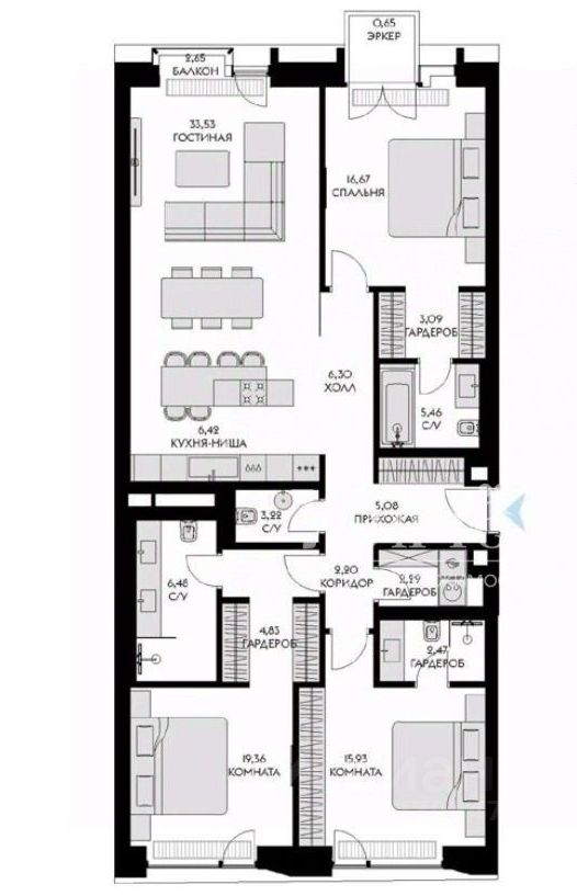 В квартире реализован дизайнерский ремонт, который порадует самых требовательных покупателей. Три совмещенных санузла обеспечат комфортное проживание для всей семьи. Лоджия станет отличным местом для отдыха и релаксации.