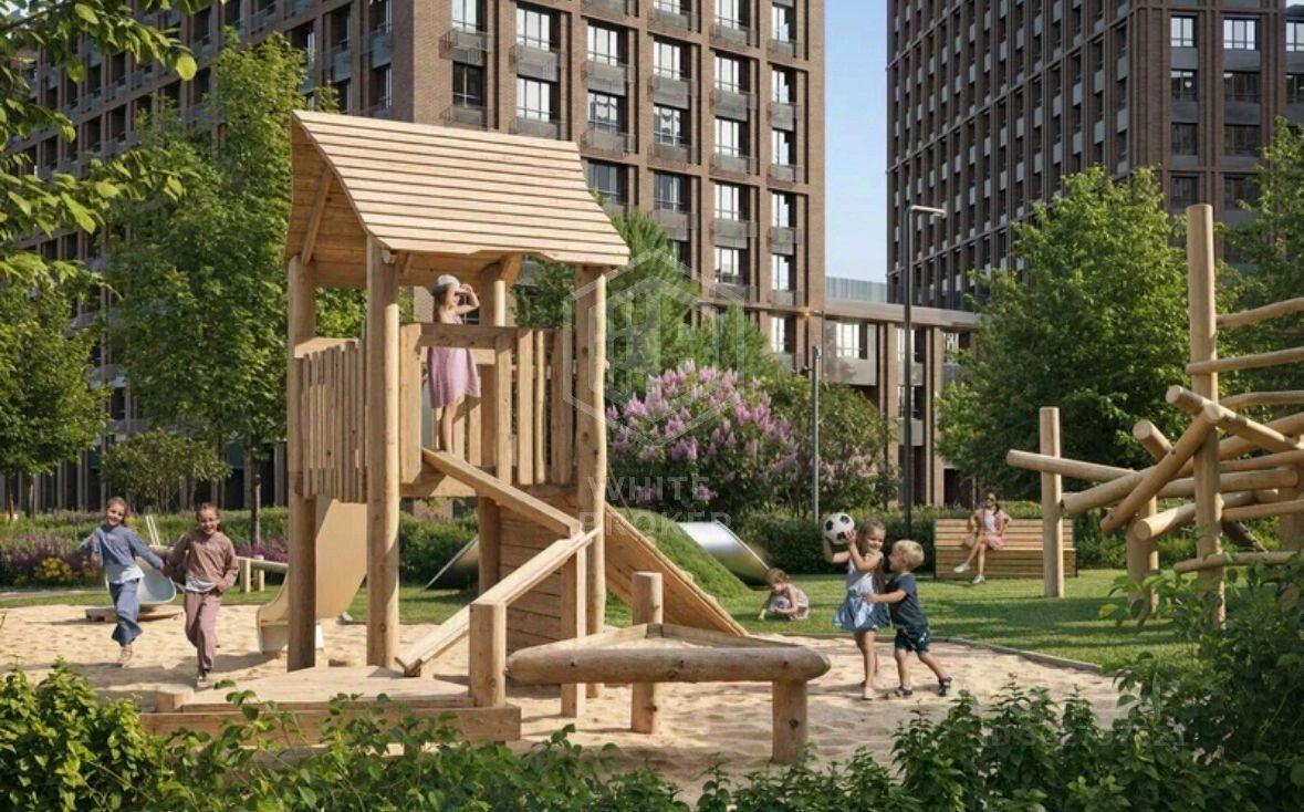 Закрытая дворовая территория с детскими и спортивными площадками.