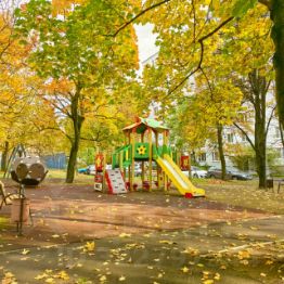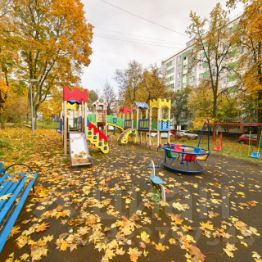 Отличный ухоженный двор с новыми детской и спортивной площадками, свежим асфальтом. Во дворе дома школа! Рядом Дворец творчества и поликлиника.
