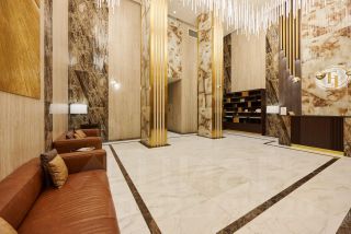 Авторское лобби с зоной отдыха, лапомойкой для питомцев и круглосуточной охраной.