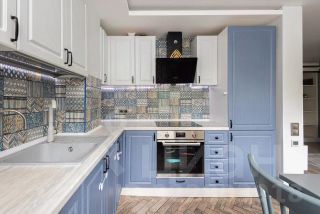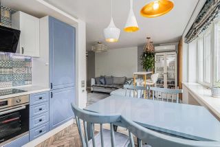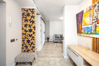 Ремонт - стильный дизайнерский проект. Натуральные материалы, продуманное освещение, выложена качественная итальянская плитка и установлены тёплые полы.
