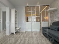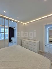 - комната жилая зонирована на спальню с гардеробной и гостиную;