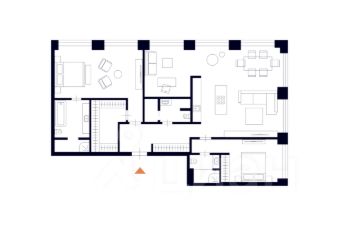 Планировочное решение: просторная кухня-гостиная-столовая, мастер-спальня с собственной ванной и гардеробной комнатами, спальня с собственной ванной комнатой, кабинет/гостевая спальня, ванная комната, гардеробная.