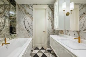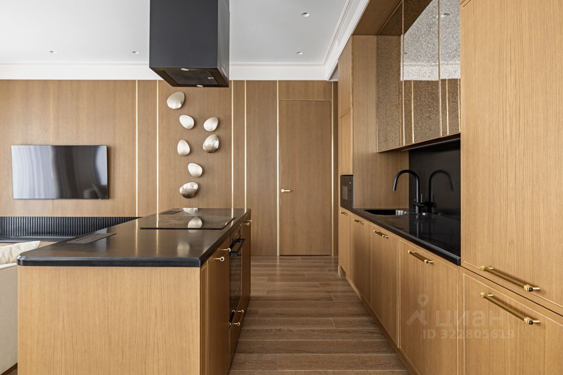 Отделка выполнена из премиальных материалов: в жилых зонах — инженерная доска, в ванных — итальянский керамогранит, в прихожей — итальянская плитка. Стены оформлены ручными обоями европейских брендов Fresq, GEO.44, Arte, а потолки украшены элегантными подвесными конструкциями с ручной лепниной.