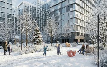 - Безбарьерная среда с многоуровневым ландшафтным парком, детскими площадками, зонами для отдыха и арт-объектами