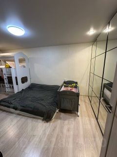 Квартира светлая и ухоженная, с удобной планировкой. В спальне — тёплое освещение и спокойная цветовая гамма, создающая атмосферу уюта и отдыха. Кухня оформлена в нейтральных тонах, с современным гарнитуром и встроенной техникой. Вся отделка выполнена аккуратно, можно заехать и жить без дополнительных вложений.