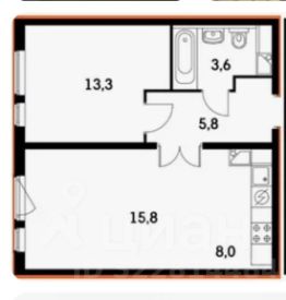 13,3 м²