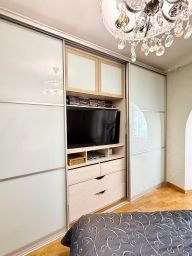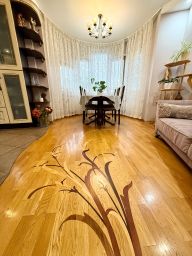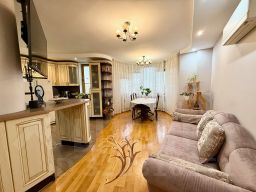 Квартира с дизайнерским ремонтом, дорогие материалы, дубовый паркет, кондиционеры, встроенная кухня со всей необходимой техникой, встроенная мебель.