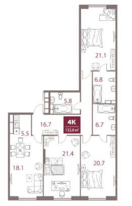 В продаже просторная 4-х комнатная квартира премиум-класса общей площадью 122,8 кв.м., по переуступке.