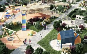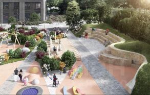 Во дворе расположены современные игровые зоны, спортивные площадки, места для отдыха, амфитеатр для пикников.