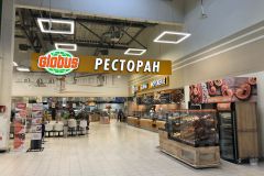 На противоположной стороне проспекта Куприна - гипермаркет Глобус с рестораном и домашней кухней.