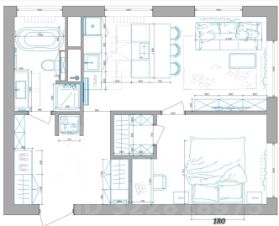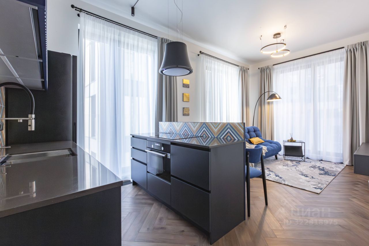 Максимально продуманная до мелочей и функциональная планировка: просторная кухня-гостиная и изолированная спальня с гардеробной и рабочей зоной.