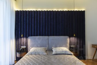 В спальне - стильная кровать с новым ортопедическим матрасом фирмы Askona Ortho Hard.