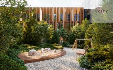 - Двор с ландшафтным дизайном: 4 функциональные зоны, детские площадки, спортзона, чайный домик, пруд с навесом и амфитеатр