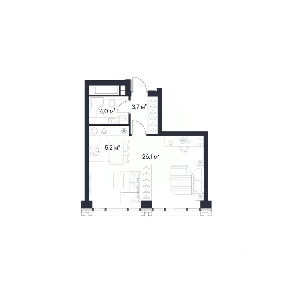 Продаётся квартира-студия площадью 39 м², расположенная на 34 этаже корпуса 2,1.