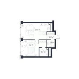 Продаётся 1-комнатная квартира площадью 49 м², расположенная на 34 этаже корпуса 2,1.