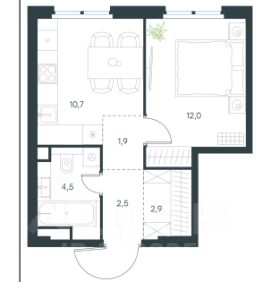 Уютная однокомнатная квартира с большим санузлом и гардеробной.