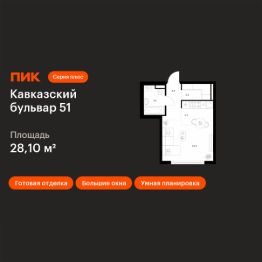 Продаётся квартира-студия площадью 28,1 кв.м на 2 этаже 23 этажного дома (Корпус 3.1, Секция 1) проекта ПИК Кавказский бульвар 51. Светлый просторный подъезд на уровне земли, функциональная планировка, большие окна, c отделкой.
