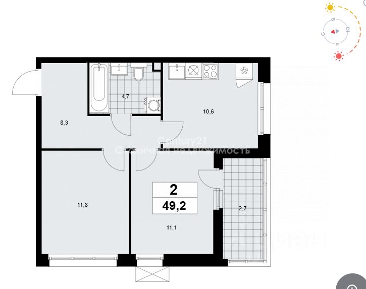 Арт. 120089262 Продается по переуступке 2х комнатная квартира, площадью 49,2 м2. в доме бизнес класса!