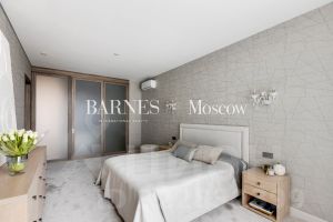 В квартире выполнена дизайнерская отделка в изысканном современном стиле. Функциональное планировочное решение: просторная гостиная с зонами столовой и кухни, мастер-спальня с санузлом, вторая спальня, 2 санузла, гардеробная.