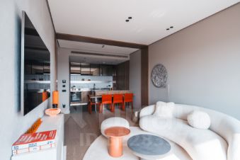 Апартамент полностью укомплектован и готов к заселению. Интерьер сочетает в себе эстетику, функциональность и продуманность каждой детали. При необходимости предоставим полное описание проекта и спецификацию материалов.