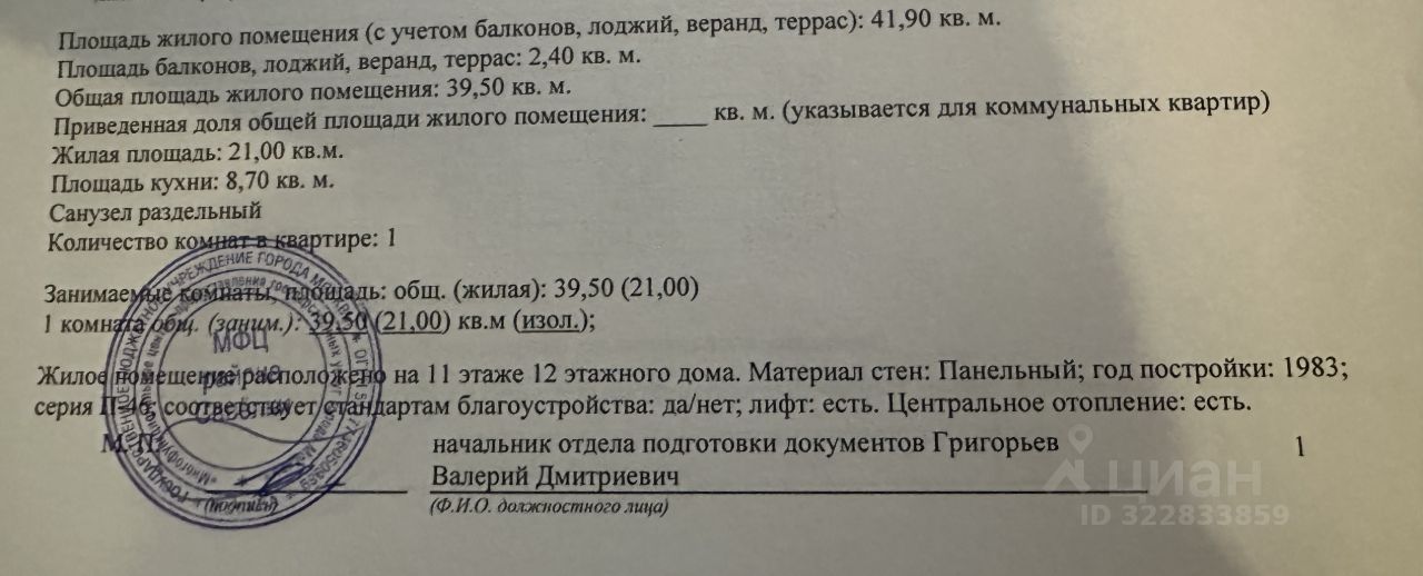 Продается уютная однокомнатная квартира площадью 41.9 кв. м на 11-м этаже 12-этажного панельного дома 1983 года постройки. Жилая площадь составляет 21 кв. м, а кухня радует размерами — 8.7 кв. м. Высота потолков — 2.67 метра, что создает просторное пространство. Окна выходят во двор, поэтому в квартире тихо и спокойно. В середине дома, не угловая. Тихие соседи.