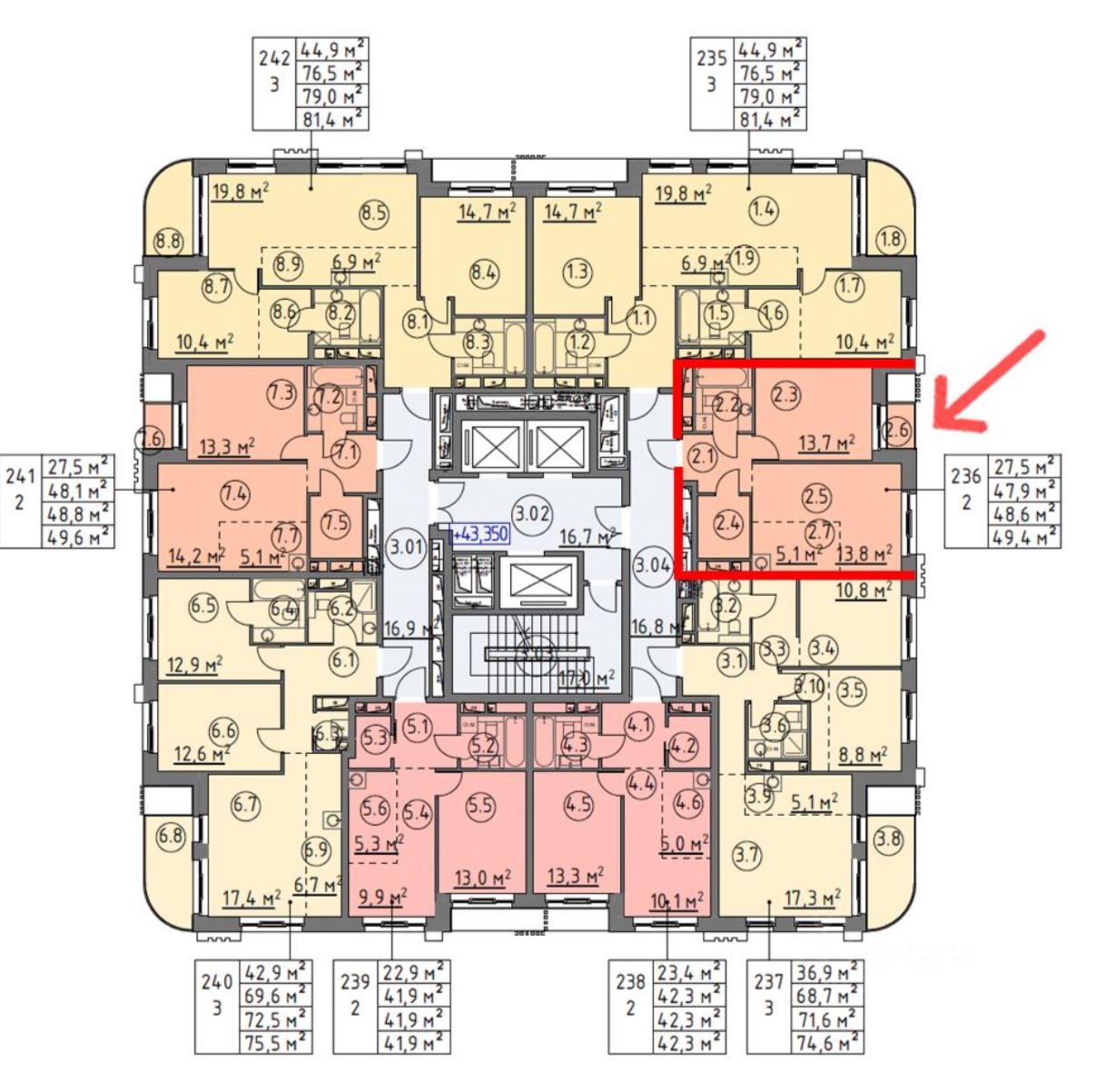 Мало квартир на этаже и в самом доме.