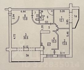 Общая пл квартиры 120м2, гостиная 43,9, спальня 15,5, гардеробная 13,6, кухонная зона 15м2. Лоджия и балкон присоединены к жилой площади, лоджия к объединенной гостиной, балкон к спальне. Перепланировка узаконена.