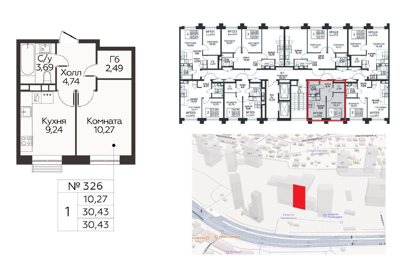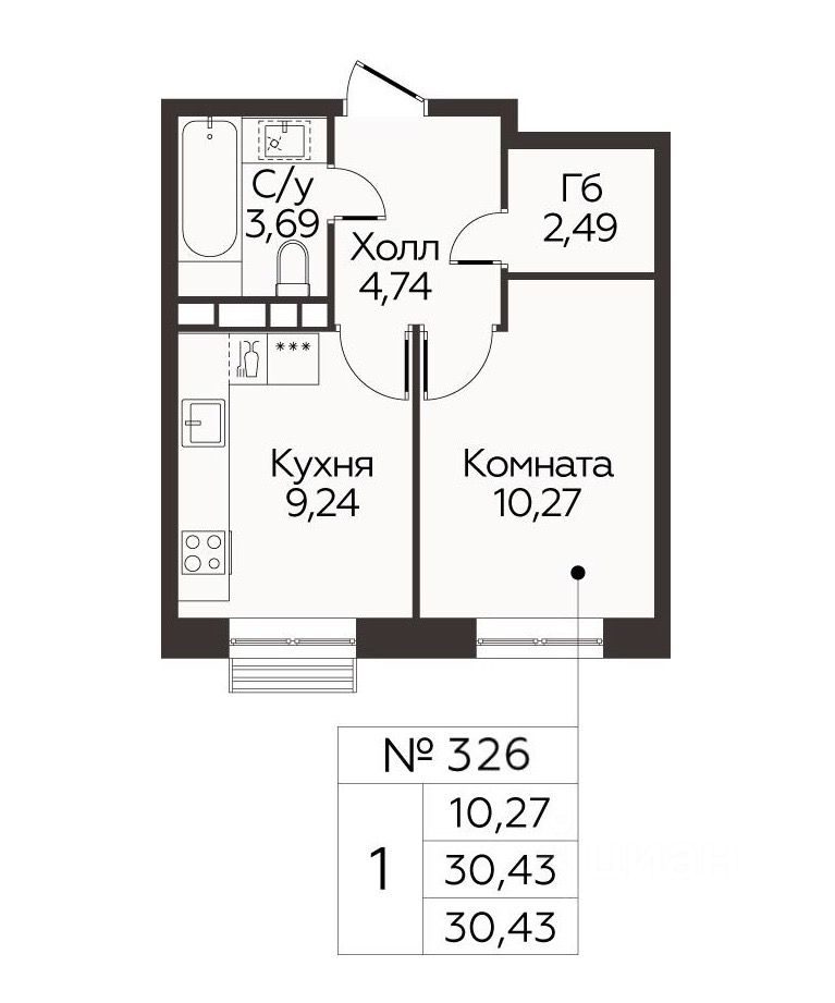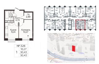 1-комнатная квартира 30,43 м² в ЖК Квартал Румянцево