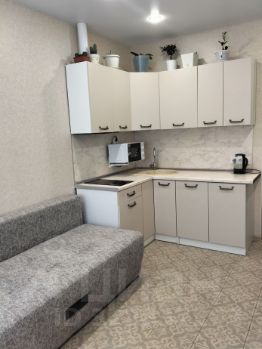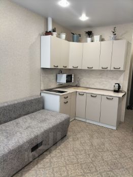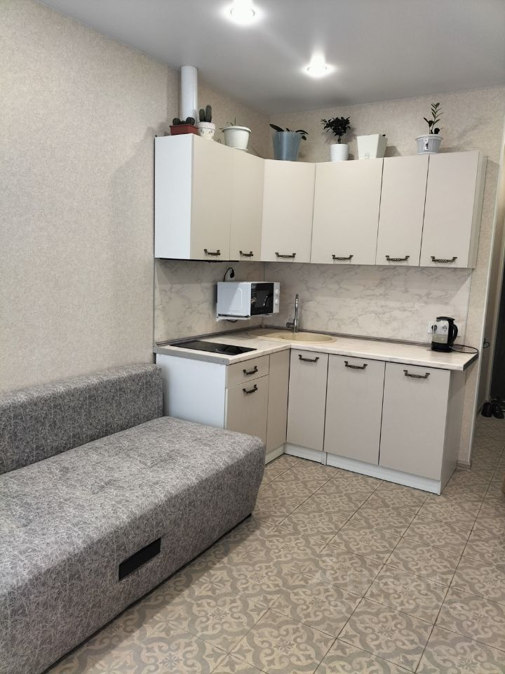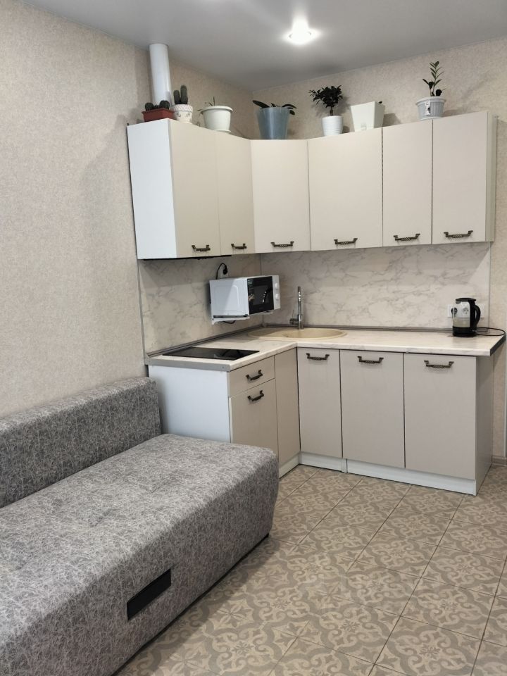Студия с панорамными окнами, что придает дополнительный объем. Выполнен хороший ремонт, имеется всё необходимое для комфортного проживания.