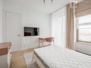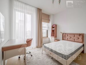 Функциональная планировка включает: кухню-гостиную с зоной столовой, где приятно проводить семейные обеды, романтические ужины или домашние киносеансы; просторную мастер-спальню с ванной и гардеробной комнатой; детскуя и уютнуя спальня; три санузла и три гардеробные, а также постирочную зону. Уникальная особенность лота — вид на 3 стороны света.
