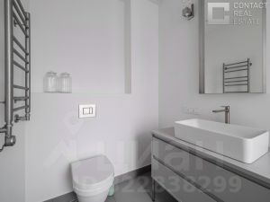 В квартире выполнена качественная премиальная отделка, включая оборудованные ванные комнаты и кухни итальянского бренда DADA. Интерьер выполнен в стиле White с тонированным полом из натурального дерева. В отделке ванных комнат использованы премиальные европейские бренды: Villeroy & Boch, Kaldewei, Gessi. Стены оформлены терраццо — материалом, состоящим из мельчайших элементов мрамора, гранита и других натуральных камней.