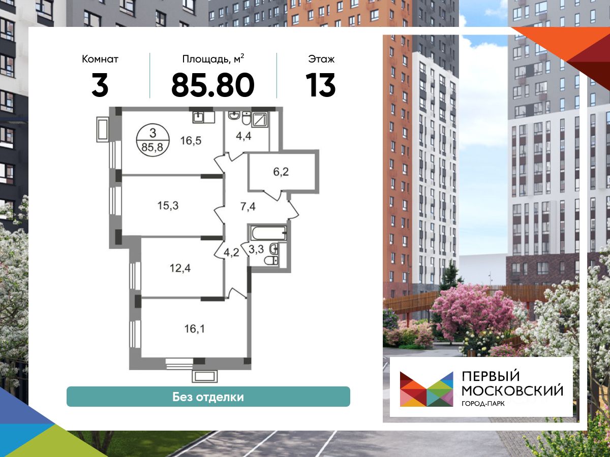 Продается трехкомнатная квартира без отделки в 9 фазе города-парка "Первый Московский".