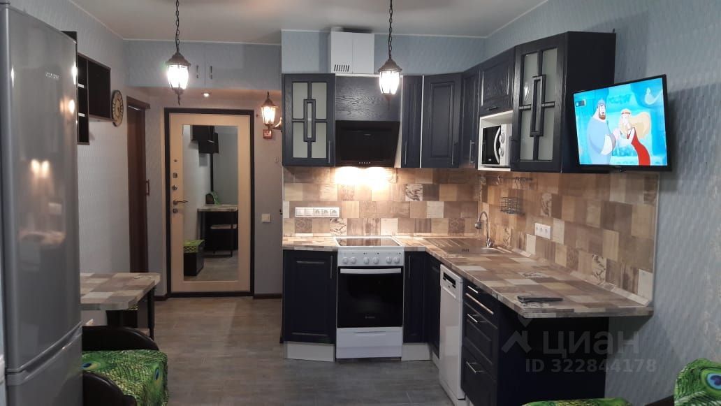 Плита электрическая. Вытяжка, посудомоечная машина, встроенная гладильная доска, микроволновка, холодильник, кондиционер, стиральная машина, всё практически новое и остаётся будущим владельцам.