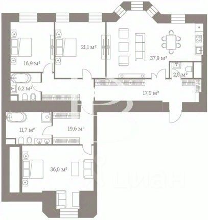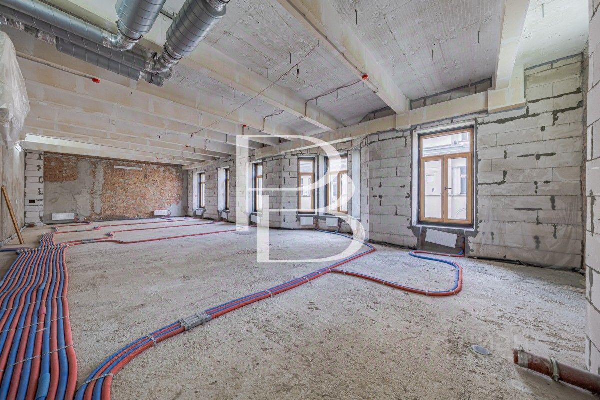 Просторная четырехкомнатная квартира свободной планировки. По плану возможно обустроить кухню-гостиную, мастер спальню со своей ванной комнатой, две дополнительные спальни со своей ванной комнатой и гостевой санузел. Гостиная и одна из спален имеют эркеры. Высота потолков 3.4 метра. Квартира располагается в историческом особняке Мускат с увеличенной толщиной стен. Окна квартиры выходят на две стороны: в тихий внутренний двор и на улицу Большая Полянка.