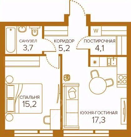 Общая площадь квартиры - 45.5 кв.м. В квартире выполнена премиальная отделка в неоклассическом стиле.