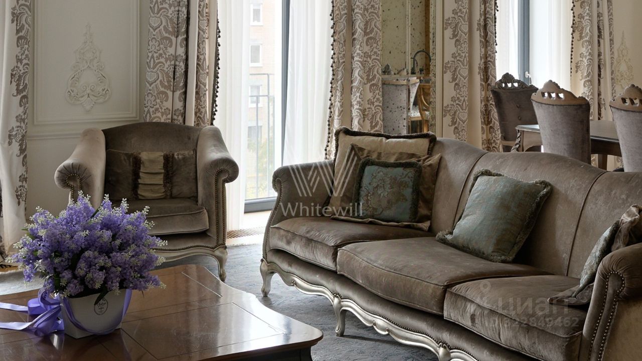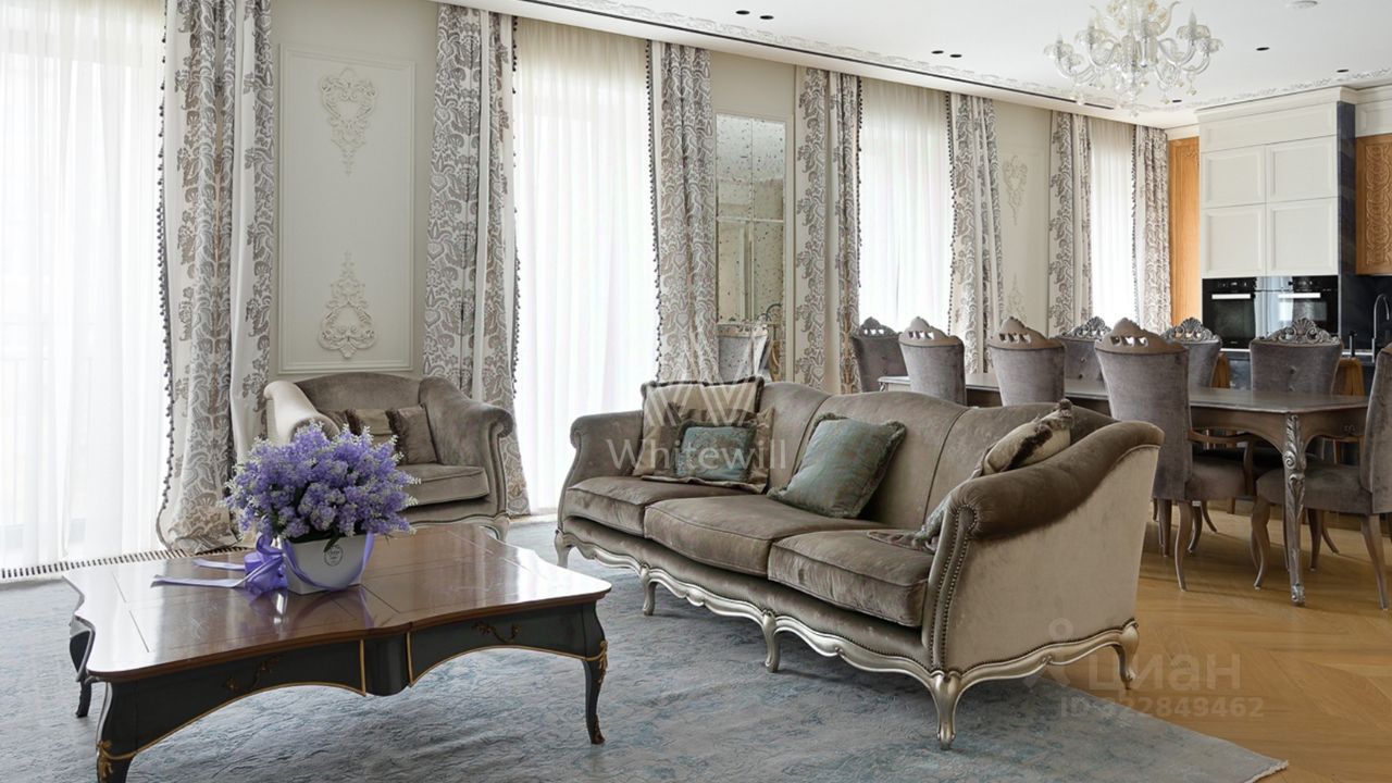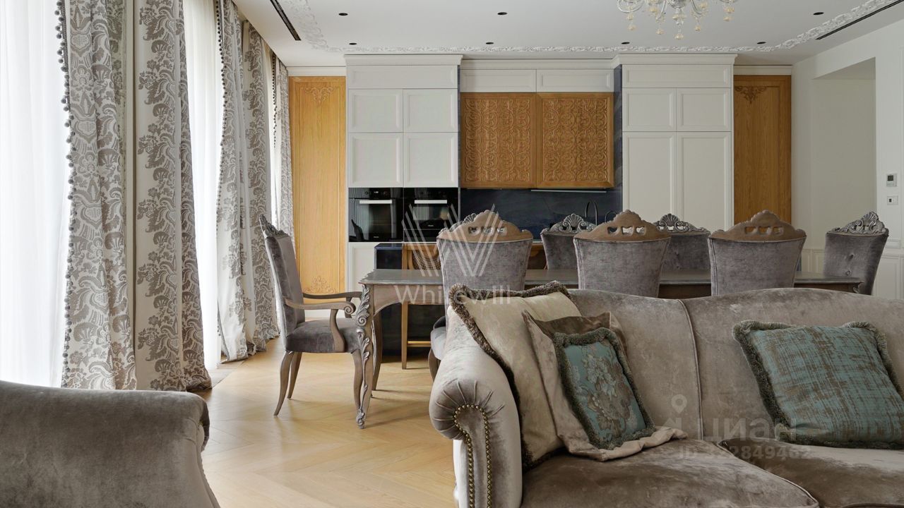 Просторная квартира с тремя спальнями в клубном доме Bunin. Выполнен ремонт в стиле современной классики в пастельных тонах. Стены декорированы молдингами и лепниной, потолок украшают розетки и хрустальные люстры. Окна в пол в сочетании с потолками высотой 3,2 метра наполняют пространство естественным светом.