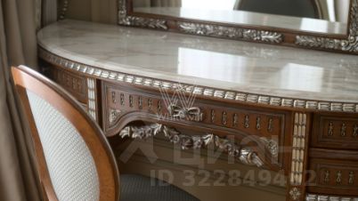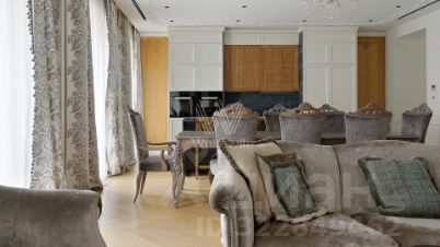 Спланирована кухня-гостиная-столовая, три спальни со своими ванными комнатами и гардеробными, постирочная, гостевой санузел, гардеробная, холл, два балкона. Квартира укомплектована итальянской мебелью Angelo Cappellini, Vittorio Grifoni и техникой Miele, сантехника Villeroy&Boch. Квартира оборудована системой "умный дом", климат-контролем, системами увлажнения и очищения воздуха. Предусмотрено два машино-места в подземном паркинге.