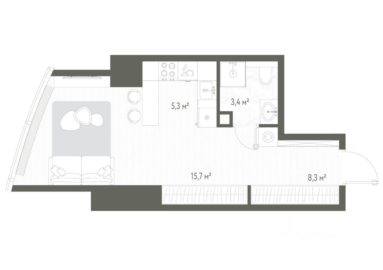 В продаже студия площадью 32.70 м² на 41-м этаже.