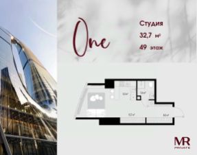 В продаже студия площадью 32.70 м² на 49-м этаже.