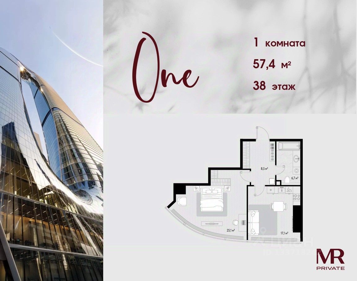 One находится в Пресненском районе, в пешей доступности от станции метро "Деловой центр". Проект был разработан выдающимся архитектором Сергеем Кузнецовым при участии международного бюро Gensler. Уникальная скульптурная форма башни, вдохновленная лентой Мебиуса, создает новый узнаваемый силуэт делового центра и задает непревзойденный стандарт вертикальной жизни. По замыслу архитекторов, жилой комплекс представляет собой две вертикальные башни, соединенные в нижней и верхней точках. На 85 этаже расположен Sky Garden — самый высокий в Европе парк с оазисом природы и секретным садом в облаках, а на 83 этаже парит стеклянный мост Sky Bridge с панорамными видами.