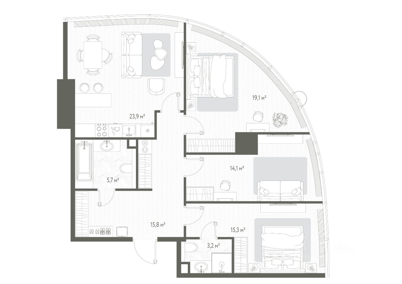 В продаже 3-комнатная квартира площадью 97.10 м² на 38-м этаже.