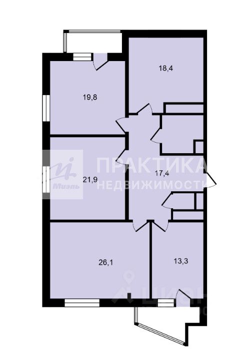 Три изолированные комнаты правильной формы. В спальне два больших окна наполняют пространство большим количеством света. Уютная большая гостиная объединена с кухней (почти 40 кв.м.), где можно собраться всей семьей и обсудить что-то важное и интересное.