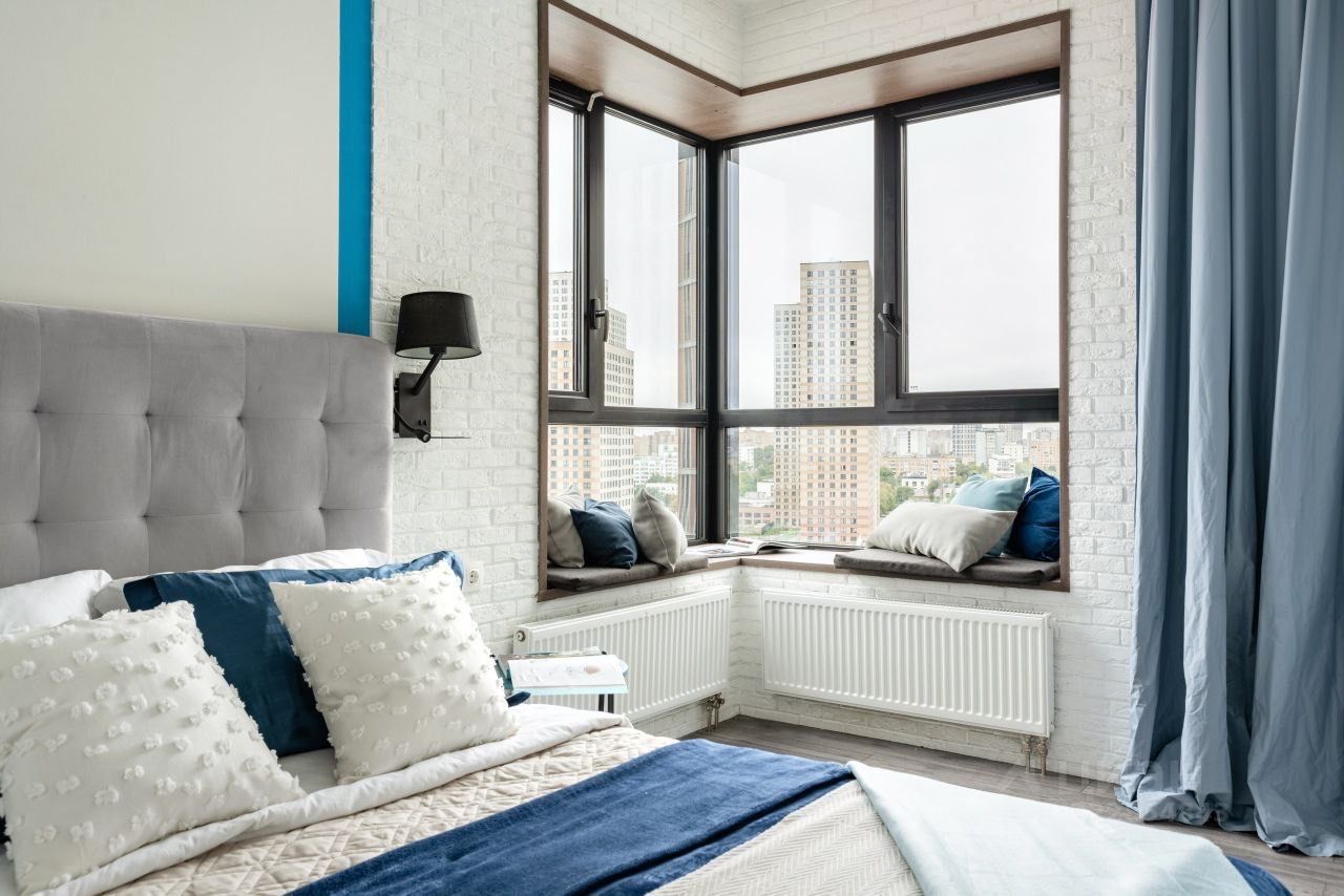 Видом на город можно наслаждаться, сидя на широких подоконников углового эркера с окнами увеличенной площади. Очень красиво!