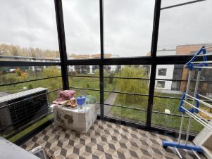 Квартира выходит окнами во двор и сквер, рощу, вид очень красивый и тихо. Балкон с панорамным остеклением с дверью в кухню.