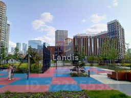 Ландшафтный двор с различными зонами, детской и спортивной площадками.