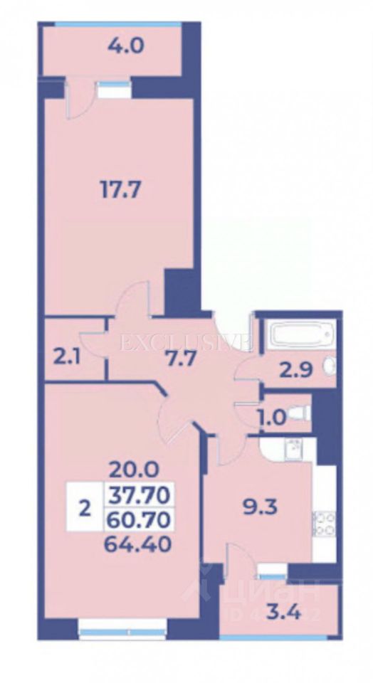 Арт. 120123610 Продается двухкомнатная квартира на девятом этаже девятиэтажного монолитного дома в жилом комплексе Эдельвейс. Комнаты изолированы. Без ремонта. Окна выходят во двор.