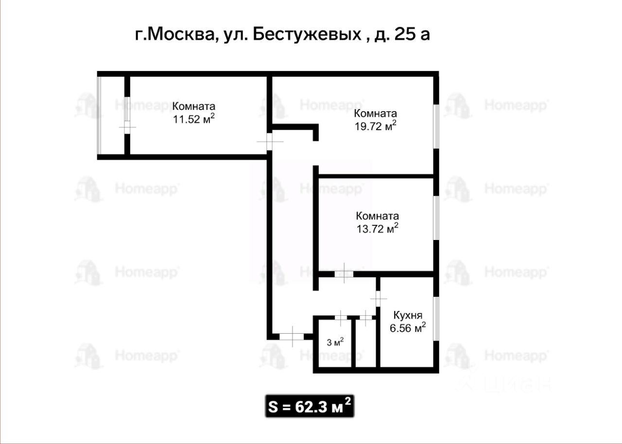 Номер лота: 94495. Продается просторная 3-комнатная квартира на ул. Бестужевых, 25А в обжитом зеленом районе в 12 минутах от метро "Отрадное"!