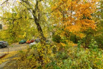 Зеленый двор, детская площадка, свободная парковка.